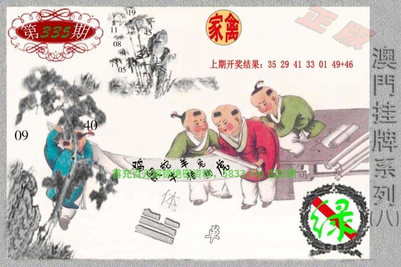 | 335期九肖 | 猴羊虎鸡狗牛蛇马兔 | 开:狗44 |